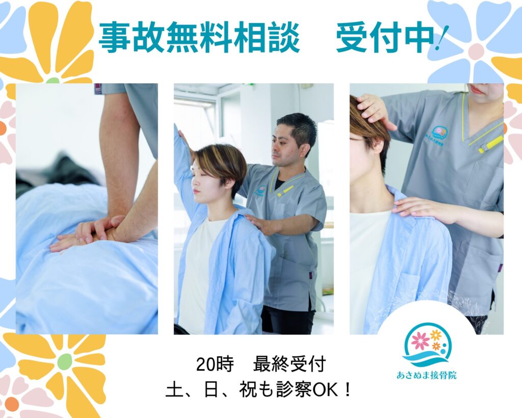 皆さんこんにちは!あさぬま接骨院です(*^^*)交通事故施術は接骨院でも受けられます!!