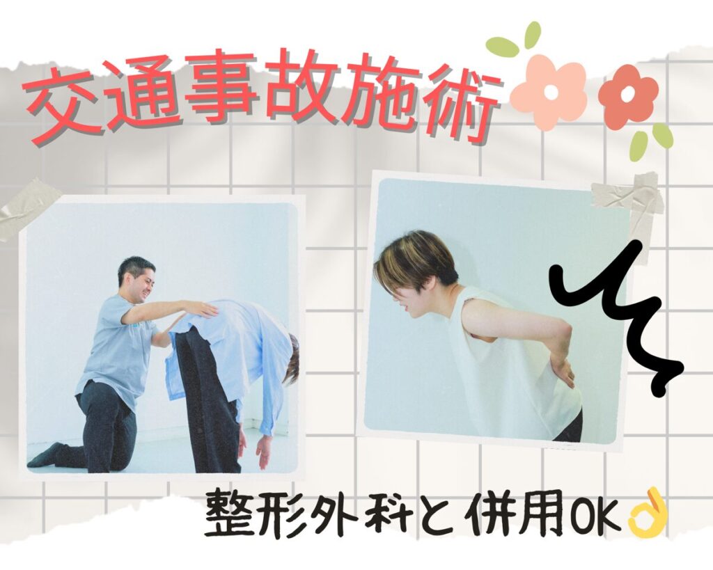 整形外科で診断書が出たところが接骨院でも施術が出来るので、おすすめは先に整形外科の受診ですが、受診前でも交通事故施術のご相談は承っております!